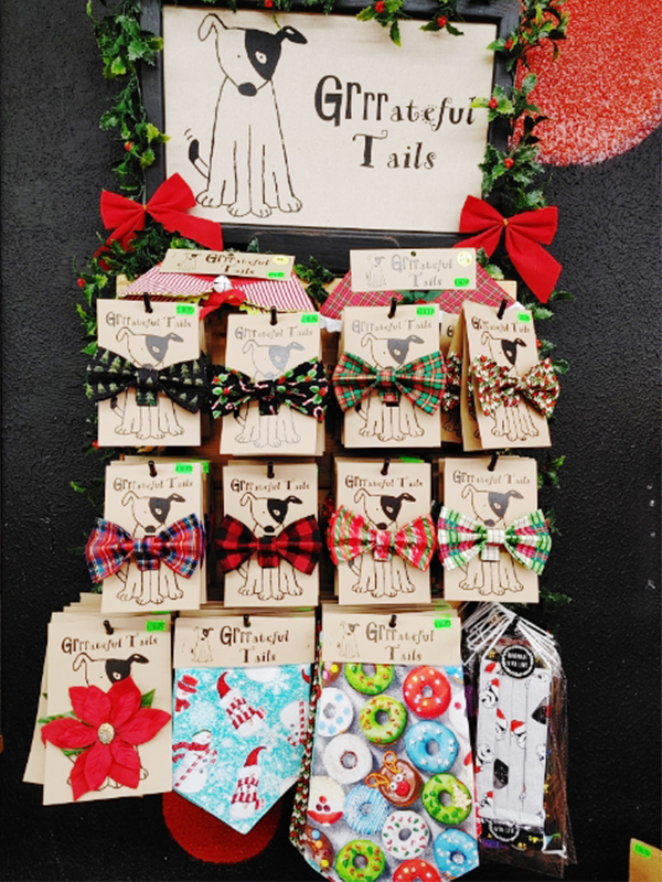 Carole-Ann Mercuri painstakingly hand crafts these absolutely adorable neck pieces. Bandanas for all, and bow ties for the boys but, I LOVE that she creates pieces especially for the girl canines on your list. Her little collars are the epitome of charming and the little poinsettia velcros onto a collar. It just sent me over the edge, LOL, I adore them!