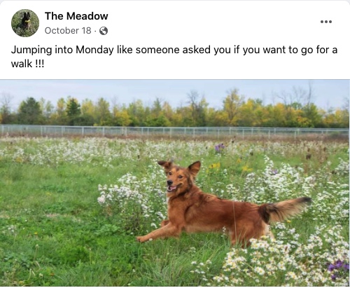 The Meadow is a private rental, by-appointment, off-lead, dog exercise area on 10 acres of fully-fenced meadow land in Niagara-on-the-Lake. You can rent by the hour ($25) and you and you dog have the place to yourselves. Perfect for a reactive dog who would love to just get out and play with you. Or you and your dog’s best friends can have their own play party in the great outdoors. With a 6 foot chain link fence around the property and a 21 x 41 foot dock diving pool, this is puppy paradise.
