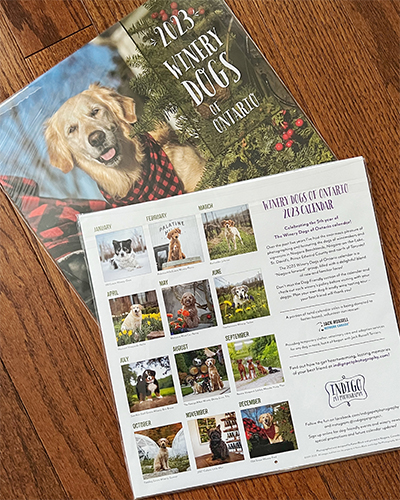 2023 is the fifth edition of the Winery Dogs Calendar! In case you have been under a rock, this calendar features dogs that are bosom buddies with Ontario’s winemakers, vintners, and winery top dogs – each month is guaranteed to bring a smile.