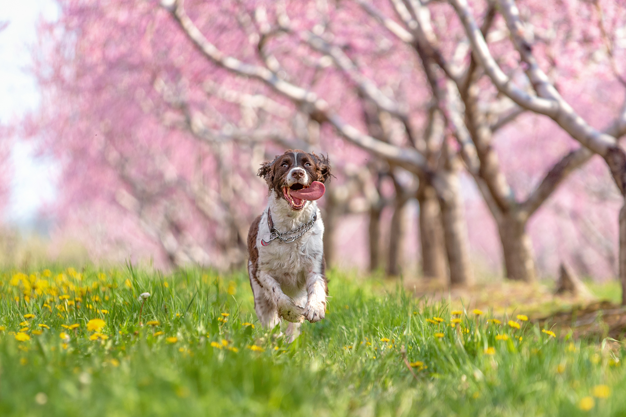 I loved working with Walter in the Blossoms. I got some fabulous photos of him and his humans as well as fun ones, like this where he’s rocketing. He’s got tongue out Tuesday down pat.